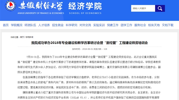 7月30-31日,我司蒲剛清博士應(yīng)邀參加應(yīng)邀參加安徽財經(jīng)大學(xué)2018年專業(yè)建設(shè)和教學(xué)改革研討會暨“新經(jīng)管”工程建設(shè)師資培訓(xùn)會,此次會議重點(diǎn)圍繞實(shí)施“新經(jīng)管”建設(shè)和本科人才培養(yǎng)方案修訂下的課堂教學(xué)改革、課程改革和師資隊伍建設(shè)等議題進(jìn)行研討和培訓(xùn)。學(xué)院任課教師和部分研究生代表30余人參加會議。